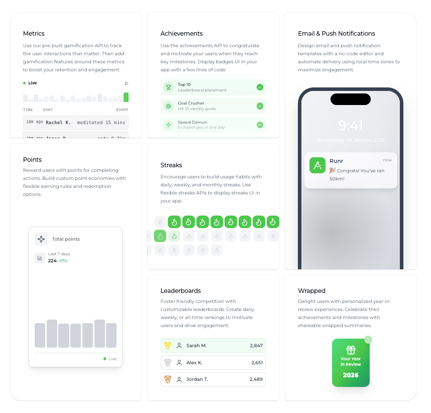 Trophy's users are the end consumers of your product. A fitness app's daily active users. A language learning app's subscribers. A productivity tool's free tier trying to convert to paid. The gamification is embedded in the product itself, not layered on top as a management tool.