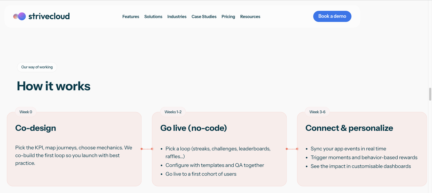StriveCloud is a managed no-code platform. They pair widgets with dedicated strategists who help design your gamification loops. It'll take at least a month to get something in production through their service, after jumping through a series of procurement and onboarding hoops.