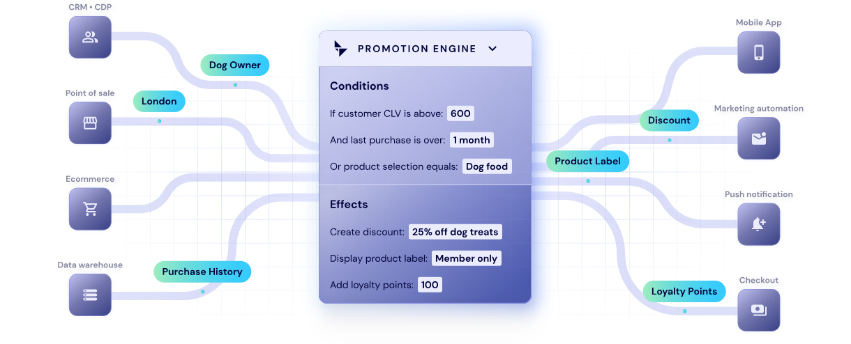 - Loyalty Engine: Points, tiers, rewards catalogs
